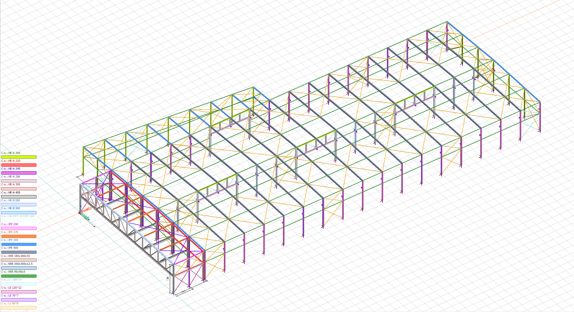 Volledige stabiliteitsstudie van stalen hal 40mx90m incl. staalverbindingen, funderingen en loopkraan